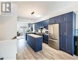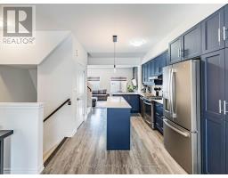 Welcome to this beautifully upgraded, modern-style 3-bedroom plus den townhome that is truly move-in ready and offers exceptional value for families. The main floor features a versatile den that can be used as a home office or entertainment room. The second floor showcases a bright open-concept layout with a stunning upgraded kitchen complete with hard-surface countertops, a large island, gas stove, stainless steel appliances, ample cabinetry, and an eat-in area, flowing into a spacious living room highlighted by a custom media wall and a convenient large size powder room. The third floor offers a generous primary bedroom with a walk-in closet and upgraded ensuite, along with two other well-sized bedrooms and another full bathroom. Recent upgrades include smart switches and dimmers, upgraded carpet, and upgraded tiles in the washrooms. With its beautiful exterior curb appeal and prime location close to amenities, schools, and highway access, this home is a must-see home ideal for young families and first-time buyers. (id:61594)