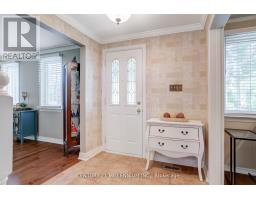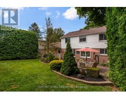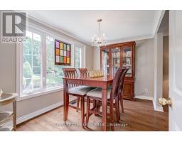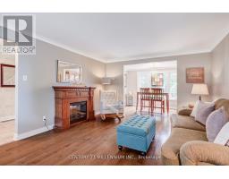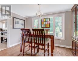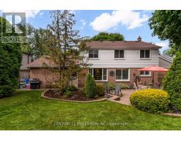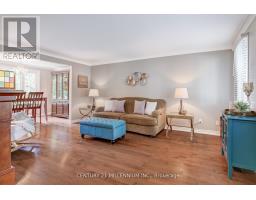 Gorgeous curb appeal in this fully detached two-storey home in much sought after Ridgehill Manor---Brampton's Best Kept Secret--mature, executive, established neighbourhood adjacent to 34 acres of Conservation/Park with Fletcher's Creek running through it. Featuring a completely private backyard with extra tall hedging truly makes this the perfect property! Beautiful main level floor plan featuring a centre hall plan with large living and dining room open concept design with upgraded dark tone hardwood flooring, crown molding, extra large picture window overlooking backyard. Cozy main floor family room/den with upgraded hardwood flooring and bright windows. Updated eat-in kitchen with ample white cabinetry, dark contrasting counters, double sinks/window view to yard, mirrored backsplash, deep pot drawers, large picture window in eat-in breakfast area/remote controlled California shutters, cook top, built-in oven, dishwasher/washer, gas dryer, walk-out to side yard. Four spacious bedrooms, semi-ensuite bathroom. Huge recreation room with dry bar, huge laundry room/storage. Central air, high efficiency gas furnace, electric garage door openers, true double car garage (two doors), garden service door, double width driveway accommodating up to 4 cars. Walking to Downtown, public transit, primary/secondary schools. Shows beautiful! (id:61594)
