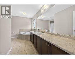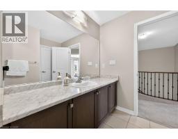 Welcome to this fabulous upgraded home located in the highly desirable Binbrook community. Offering over 2,400 sq. ft. of above-grade living space, this residence delivers a true upscale feel throughout. The main floor features 9-foot ceilings and a stunning gourmet eat-in kitchen designed to impress, complete with quartz countertops and backsplash, and a large centre island with breakfast bar. The adjoining great room is perfect for entertaining family and friends, highlighted by a gas fireplace and an expansive window overlooking the backyard. Solid oak stairs with wrought iron pickets lead to the second level, which offers four spacious bedrooms and a convenient upper-level laundry room with a laundry tub. The primary bedroom includes a generous walk-in closet and a beautifully appointed ensuite featuring a separate shower and freestanding tub. The third bedroom enjoys semi-ensuite access, ideal for added convenience. The double-car garage provides direct interior access. This immaculately maintained home has been freshly painted and is truly move-in ready. Ideally situated close to parks, schools, trails, shopping, and everyday amenities, with easy access to major routes. A turnkey opportunity in a growing community—move in and enjoy. (id:61594)