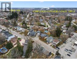 Looking for the perfect starter home in downtown Hespeler? This beautiful century home w/loft is priced competitively to many condos, but comes with the perks of a single-family home including a private backyard and dry basement storage. The kitchen is re-modeled with newer cabinetry, counters, sink, and flooring. The living room has vintage pine flooring with a modern black accent wall and built-in fireplace w/mantle. Upstairs you'll find more pine flooring in the cozy bedroom and den (which can easily be transformed into another bedroom). The bathroom has been updated with a walk-in tiled shower and heated flooring! Downstairs provides an adequate laundry area (washer/dryer) and ample storage. Step into the private fully-fenced backyard with poured concrete sitting area, covered roof, and turf grass for minimal maintenance. Just a stroll away from downtown picturesque Hespeler with easy access to the 401, central to Cambridge, Guelph and Kitchener. All electrical updated, gas furnace and newer A/C, Ecobee, water softener (2024), water heater (rented - 2024), kitchen flooring (2025). (id:61594)