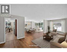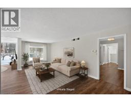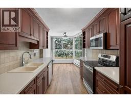 Welcome to The Highlands by the Park at 20 Berkley Road, an exclusive residence set on a quiet dead-end street in historic West Galt, just steps from Victoria Park. Surrounded by a private wooded landscape and offering sweeping views of the city skyline, this refined setting delivers peace, privacy, and timeless appeal. This beautifully updated and sprawling one-storey condominium offers approximately 1454 sq. ft. of elegant living space, featuring 2 bedrooms and 2 bathrooms thoughtfully designed for both comfort and sophistication. Freshly painted interiors, new flooring and plush bedroom carpeting create a polished, move-in-ready atmosphere. Stepping into the unit, an expansive centre foyer welcomes you with generous storage and convenient in-sulte laundry. The oversized primary suite is a true retreat, complete with a private ensuite, while the second bedroom offers flexibility for guests or a refined home office. At the opposite end of the residence, the spacious living room, dining room and sitting room areas provide an ideal setting for entertaining or quiet relaxation with floor-to-celling windows inviting an abundance of natural light, enhancing the home's airy and serene feel. The galley-style eat-in kitchen is both functional and elegant, with ample storage, and a pull-out pantry. Located minutes from downtown Galt's boutique shops, fine dining, and cultural charm, this exceptional condo offers luxury living in a truly serene setting (id:61594)