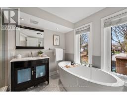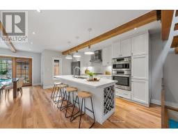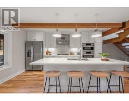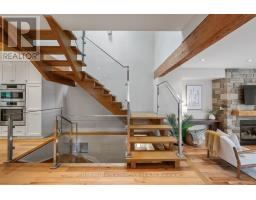 Your castle by the lake awaits. Tucked into a serene setting, this one-of-a-kind 3+1 bed, 4 bath home showcases stunning architectural details, including exposed wood beams, a charming turret and a striking stone fireplace.Beautifully curated living spaces that feel both warm and elevated. At the heart of the home is the designer kitchen crafted for both everyday living and entertaining. The walkout to your own garden escape, surrounded by lush greenery is designed for relaxation and connection. Each area of this special home is anchored by Natural light. The second-floor atrium offers a private retreat complete with its own balcony and glimpses of the lake-perfect for quiet mornings or evening unwinds. The primary suite is the sanctuary you've dreamed of. Vaulted ceilings with a private ensuite complete with soaker tub with a view of the garden and your own private balcony allows you to step outside for a quiet morning coffee. Whether hosting or unwinding, the setting feels peaceful and private. Adding to the home's versatility is a fully self-contained in-law suite with a separate entrance-ideal for extended family, guests, or additional income potential. Complete with parking and a generous rear storage space or workshop, this home offers both function and flexibility. Located on the iconic waterfront trail and literally steps to the lake you can enjoy long scenic walks and bike rides through the Bluffs, parks and flower garden. (id:61594)