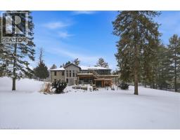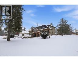 RARE OPPORTUNITY! Custom built raised bungalow on a 1.04-acre lot, offering court location surrounded by protected greenspace. This exclusive, 10 estate court rarely has homes come up for sale and 20 Grandy lane is one that takes full advantage of the natural features, completely backing onto mature forest with direct access to Millcreek conservation land. The home features a stunning all stone exterior with a beautiful retaining wall and carefully set natural stone steps, leading to the front door. The main level layout is wide open with large windows, designed to overlook the backyard from anywhere within the open space and providing access to the elevated multi-level deck completed with composite decking and glass rails. A rich, maple raised panel kitchen sits central with an oversized quartz countertop and raised bar sitting area; elegant crown molding finishes the cabinets to the ceiling with built-in stainless-steel appliances, gas cooktop. Equal in elegance is the built-in family room wall unit featuring gas fireplace insert. A three-sided fireplace separates the dining room from a sunken sitting area providing for an elevated view of the backyard; coffered ceiling accents and hardwood flooring span the space. Completing the space is a large bedroom, laundry, 2-piece bathroom, and the primary suite, complete with walk in closet and recently renovated(2023) 5-piece spa like ensuite. A hardwood staircase leads to the lower level which is still completely above grade; the home was strategically placed to take full advantage of the walkout. Lower level gives access to the oversized, staggered double car garage. Perfectly suited as a multi-generational home, offering three bedrooms, a recently renovated (2023) 4-piece bathroom, recreation room with gas fireplace, and kitchenette along with wet bar. Roof(2024), Additional oversized garden shed for equipment storage. Minutes from the 401, amenities, and schools. Don’t miss this truly beautiful property! (id:61594)