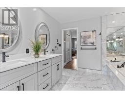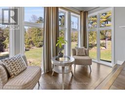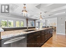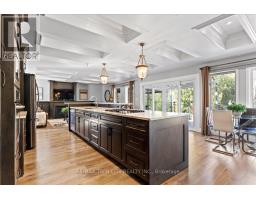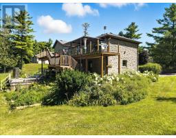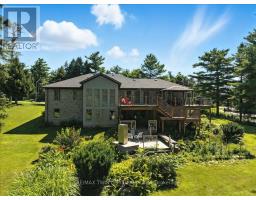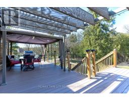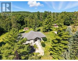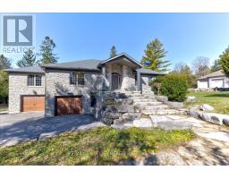 RARE OPPORTUNITY! Custom built raised bungalow on a 1.04-acre lot, offering court location surrounded by protected greenspace. This exclusive, 10 estate court rarely has homes come up for sale and 20 Grandy lane is one that takes full advantage of the natural features, completely backing onto mature forest with direct access to Millcreek conservation land. The home features a stunning all stone exterior with a beautiful retaining wall and carefully set natural stone steps, leading to the front door. The main level layout is wide open with large windows, designed to overlook the backyard from anywhere within the open space and providing access to the elevated multi-level deck completed with composite decking and glass rails. A rich, maple raised panel kitchen sits central with an oversized quartz countertop and raised bar sitting area; elegant crown molding finishes the cabinets to the ceiling with built-in stainless-steel appliances, gas cooktop. Equal in elegance is the built-in family room wall unit featuring gas fireplace insert. A three-sided fireplace separates the dining room from a sunken sitting area providing for an elevated view of the backyard; coffered ceiling accents and hardwood flooring span the space. Completing the space is a large bedroom, laundry, 2-piece bathroom, and the primary suite, complete with walk in closet and recently renovated(2023) 5-piece spa like ensuite. A hardwood staircase leads to the lower level which is still completely above grade; the home was strategically placed to take full advantage of the walkout. Lower level gives access to the oversized, staggered double car garage. Perfectly suited as a multi-generational home, offering three bedrooms, a recently renovated (2023) 4-piece bathroom, recreation room with gas fireplace, and kitchenette along with wet bar. Roof(2024), Additional oversized garden shed for equipment storage. Minutes from the 401, amenities, and schools. Don't miss this truly beautiful property! (id:61594)