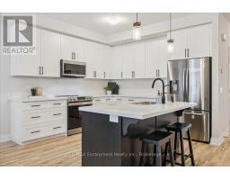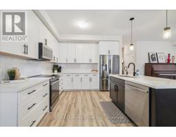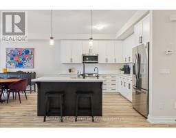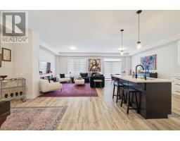 Extensively upgraded, spacious 4 bedroom end unit, 3.5 bathroom townhome in beautiful Waterdown. From the moment you enter, you are welcomed by a seamless open concept layout that flows beautifully between the kitchen, dining and living areas. Main floor comes with 9ft ceilings, oak staircase, smooth ceilings throughout, white kitchen, vinyl plank to entire main floor and upper hallway. The custom kitchen includes S.S. appliances, quartz countertop, matte black fixtures and hardware throughout the home. Main floor also features a versatile den perfect for a private office for those who work from home. Upstairs features four generously sized bedrooms, berber carpet, 3 full bathrooms including 2 ensuites, laundry, and an oversized walk-in closet. The primary ensuite offers a double vanity with quartz counters and a custom glass shower door. Minutes from Hwy's, Go Station, shopping, schools, trails. This home is thoughtfully designed with quality modern upgrades for both everyday living and refined entertaining. A rare opportunity to own a beautifully upgraded home! (id:61594)