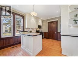 This home is a rare blend of historic character and modern living—quietly set on a tree-lined street in the heart of the city’s tech hub, just steps from Victoria Park. The double-brick exterior offers undeniable curb appeal, complimented by a covered front porch and parking for 3 cars. Inside, the foyer welcomes you with a curved birch staircase with the original banister, showcasing the exceptional craftsmanship this area is known for. To the right, the spacious living room features maple hardwood flooring that flows seamlessly into the formal dining room and continues into the beautifully designed kitchen—both stylish and highly functional. Thoughtful details like elegant trim and baseboards enhance the home’s timeless appeal throughout. From the kitchen, a door leads to the former summer kitchen, open to lots of possible uses and even has a loft and a separate heating system. Step outside to discover your fenced yard with deck and room for gardening! The back room also has convenient access to the side yard and a shed complete with a barn door and ramp—perfect for easy storage. Upstairs, you’ll find 4 well-sized bedrooms and a 4 pc bathroom. Walk to work, shops, dining, and green space, with The Tannery and its restaurants, cafés, and services just around the corner. For the history buffs: This Ontario Gothic classic home was built in 1889 for Henry Wildfong: a 19th century builder, contractor, and local politician. This is a truly move-in-ready heritage style home in a convenient location. Book your private showing today! (id:61594)