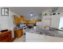 Raised ranch offering approximately 1,076 sq ft on the main level, featuring two carpeted bedrooms and a full bathroom with a tub. Open-concept layout includes a ceramic-tiled kitchen, dining area, and living room. The lower level includes a carpeted family room with a Franklin fireplace and patio doors leading to a downgraded area. Also on the lower level is a third carpeted bedroom, a bathroom with a fiberglass shower stall, and an unfinished laundry/storage/utility room with washer, dryer, laundry tub, and enclosed under-stair storage. Foyer provides interior access to a finished two-car garage. Corner lot with landscaped yard and fully fenced backyard includes a covered concrete patio and a shed with a concrete floor. (id:61594)