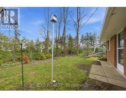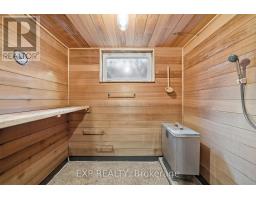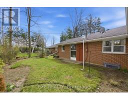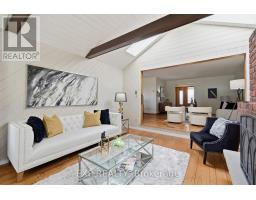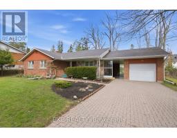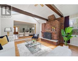Experience the perfect blend of city convenience and natural serenity in this architect-designed mid-century modern bungalow, set on a rare, nearly quarter-acre, park-like lot with an impressive 90-foot frontage-just one block from Ross Memorial Hospital. Offering over 2,000 sq ft of living space, the home features a spectacular sunken family room with oak-plank flooring, soaring cathedral ceilings, skylights, and a dramatic picture window framing lush outdoor views. A distinctive Finnish-designed antique brick fireplace with hearth and cooking arm anchors the space with timeless character. Three spacious bedrooms with original hardwood, elegant L-shaped living and dining areas, and a generous kitchen complete the main level. The finished lower level, with a separate side entrance, offers a large rec room with a fireplace, a cedar-lined sauna with a shower and dressing area, and an added bath-ideal for relaxation or extended living. Outside, enjoy mature landscaping, an interlocking driveway, a private front porch, and a covered breezeway with potential for a second garage. (id:61594)