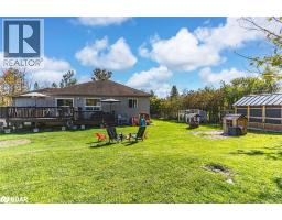 RAISED BUNGALOW WITH IN-LAW POTENTIAL ON NEARLY HALF AN ACRE WITH ATTACHED GARAGE & A LOFT! Nestled in a peaceful Hawkestone setting near Lake Simcoe, this charming raised bungalow captures the best of small-town living with quick access to Highway 11 and is approximately 15 minutes to both Barrie and Orillia. Spend your days by the water at the nearby Hawkestone dock, pavilion, boat launch, and Oro Beach, or explore scenic trails only a short walk away. The nearly half-acre lot offers ample outdoor enjoyment with a large deck, two sheds, a fire pit, a chicken coop, and a kids' playset. The front of the home showcases great curb appeal, featuring an interlock walkway and a welcoming covered porch. The open-concept main level features hardwood and tile flooring, timeless finishes, and a bright kitchen with wood cabinetry, a breakfast bar, pantry, and some stainless steel appliances, including a gas stove, with clear sightlines into the living and dining areas. A walkout from the dining room opens to the back deck, where mornings start with coffee in the fresh air and evenings end surrounded by the sounds of nature. The primary bedroom includes a 3-piece ensuite and two double closets, while the main floor laundry with a sink adds everyday practicality. The fully finished basement, featuring a separate entrance, offers in-law potential and includes a cozy rec room with a gas fireplace, built-in bookshelves, a fourth bedroom, and a full bathroom. The attached two-car garage includes a loft area that provides additional storage, and the home is equipped with an 11 kW Generac generator. A truly inviting #HomeToStay in a setting that's easy to fall in love with. (id:61594)