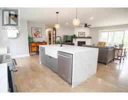 Tucked away in the charming village of Mount Pleasant, this beautifully renovated 3-bedroom, 1.5-bath home sits on a spacious 0.45-acre mature lot and offers the perfect blend of comfort, style, and privacy. Surrounded by trees, this property delivers peaceful small-town living while still being just a short drive to Brantford and everyday amenities. Step inside to a bright, thoughtfully updated interior where large windows fill the home with natural light. The heart of the home is the stunning, fully renovated chef's kitchen (2022), featuring quartz countertops with a waterfall island, white shaker cabinetry, stainless steel KitchenAid appliances, a farmhouse sink, and custom finishes throughout. The open-concept layout flows seamlessly into the dining area and great room, where a gas fireplace with shiplap surround creates a warm and inviting space for everyday living and entertaining. Expansive 16-foot sliding doors lead out to the upper deck, creating the perfect indoor-outdoor connection. The main floor offers three well-sized bedrooms and an updated bathroom with a double vanity, while a bright 3-season sunroom provides a peaceful spot to relax and take in views of the backyard. The fully finished walk-out basement (2025) adds incredible versatility with a spacious recreation room, second fireplace, additional bonus room ideal for a guest bedroom, office, or gym, and direct access to the backyard. Outside, enjoy your own private retreat complete with a tiered deck (2023), above-ground pool, and hot tub, all surrounded by mature trees and a fenced yard. This is small-town living at its finest-offering space, style, and a lifestyle you'll love. (id:61594)