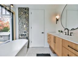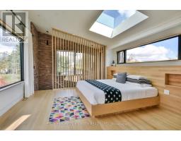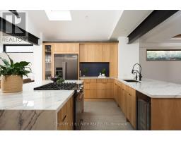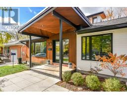 Stunning Mid-Century Modern Masterpiece, Fully Renovated in Prestigious East End. Prepare to be impressed by the flawless execution of high end building. This home has been reimagined with a dramatic 3-storey addition creating a one-of-kind living experience that blends sophisticated, midcentury modern flair with state-of-the art comfort. From the soaring ceilings to the spa-inspired ensuite, every detail has been meticulously curated. Discover unique touches like statement brick wall and sophisticated covered low-slope front entry that enhances the homes curb appeal.Featuring Dramatic, Sun-drenched, open concept, great room with awe inspired aircraft cables and vaulted ceiling gives a sense of volume. The cupola and skylight bathe the area in natural light, highlighting the custom fluted cabinetry of the new designer kitchen and stylish slat wall feature. A true centerpiece, with gorgeous waterfall countertops and ample storage perfect for daily life and grand-scale entertaining. Ascend to your private oasis the master suite features a custom-built king size bed frame and is flooded with light from oversized windows. The lower level spa-like bathroom is a revelation, complete with luxurious stone finishes, soaker tub, custom vanity, steam shower and heated flooring. Enjoy beautiful warm days and cozy evenings on the heated, covered porch, overlooking a spacious backyard adorned with mature trees- a perfect setting for entertaining. Rest easy with a complete suite of new mechanicals, incl: new furnace, a/c, a ducted mini split for optimal climate control. The envelope is fortified with rigid interior insulation, delta wrap water proofing, insulated foundation, new sump pump, and new municipal sewer line, ensuring efficiency and peace of mind for years to come. A rare opportunity to own a bespoke architectural gem. Book your private viewing today. Owner is licensed realtor. (id:61594)