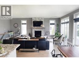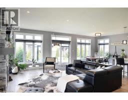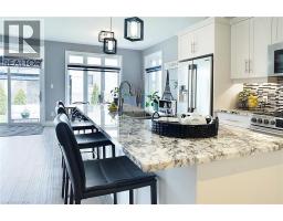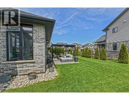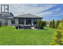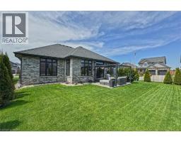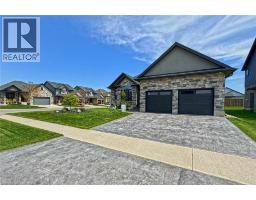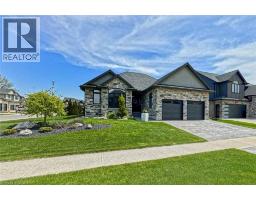 Premium quality energy-efficient stone and brick expansive ranch bungalow 1829 sq. ft. built by Goodman Homes in 2018, with upgraded features throughout. Stunning entrance stone work, large double garage and stamped concrete driveway. Open airy interior feel with elevated ceilings and many surrounding windows in the living room. Walkout to landscaped private corner lot with iron fencing. Beautiful seating area on a stone patio with pergola covering and privacy evergreen trees. Lawn remote underground sprinkler system (lush grass result). Impressive kitchen with stone countertops, oversized island, newer appliances (gas stove and vent hood), spacious separate walk-in pantry and coffee bar section. Lovely dining space and massive living area with gas stone fireplace. Custom window blinds throughout. Wide plank engineered flooring on the main (no carpeting). The ample main floor laundry room is separate from a handy mudroom off the garage. So many storage spaces in the home. Oversized primary bedroom with walk-in closet and lovely double sink ensuite with shower and soaker tub. Second main double sized bedroom with huge window as well. Handy second full bath with dual bath/shower capacity. HVAC air filtration system, wireless garage door remote, Ring doorbell security. The undeveloped basement with bath rough-in is the size of the upper floor. Easily add two to three bedrooms (or games area and family room - currently a workout area, recreation room and storage. The subdivision is flanked with the agricultural land owned by Guelph University. This adds a natural calm feel to this area, close to amenities and trails but separate from the hustle bustle of traffic. You may not have viewed homes in this location before so you must be ready for loving this Euro feel home in a prime location. (id:61594)