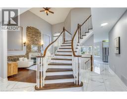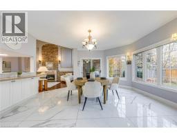 Welcome to this stunning executive residence with 3,181 sqft of above-ground living space (Plus Finished basement). This beautifully upgraded family home offers an impressive blend of elegance, comfort, and functionality in one of Oakville's most sought-after neighbourhoods. From the moment you step inside, soaring two-storey ceilings, expansive picture windows and bright, sun-filled living spaces create a grand yet welcoming atmosphere perfect for entertaining and everyday living. The main floor features multiple gathering areas including a formal living room with dramatic floor-to-ceiling windows, an inviting family room with a stone feature wall and gas fireplace, and a spacious dining area overlooking the backyard. The open-concept eat-in kitchen is designed for both style and convenience with stainless steel appliances, a centre island, stone backsplash, ample cabinetry and a walk-out to the private yard. Upstairs, the luxurious primary suite offers a serene retreat with a large bay window seating area, double closets and a beautifully appointed spa-like ensuite with dual vanities and a glass-enclosed shower. Additional bedrooms are generous in size with premium Harwood custom built-ins, large windows and warm hardwood floors. The fully finished basement extends the living space with an extra bedroom, open recreation room, built-in shelving, wet bar and ample room for a home theatre, games area, gym or playroom. This exceptional home is surrounded by parks, trails and green space, including Neyagawa Park and the picturesque Sixteen Mile Creek Trail. Families will appreciate access to top-rated schools such as Forest Trail, West Oak, Mother Teresa and Garth Webb Secondary, with private options like Appleby College just minutes away. Located close to shopping, restaurants, community centres, Glen Abbey Golf Club, transit and major highways, this home offers the perfect balance of convenience, lifestyle and luxury. (id:61594)