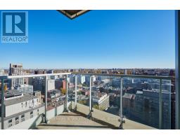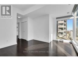 Luxurious 1-bedroom + den CORNER unit, spanning 805 sq. ft.-one of the largest 1 bed. floor plans in its collection. This sophisticated residenceoffers an open-concept layout with floor-to-ceiling windows that provide million-dollar, unobstructed downtown views from the 20th floor. Thecustom kitchen is equipped with granite countertops, a beautiful new backsplash, and elegant white cabinetry. Sliding doors open to a privatebalcony, perfect for enjoying the city scape. The versatile office/den area is conveniently located to the right of the kitchen. The large primarybedroom boasts a corner window and a dedicated study area. Additional features include in-suite laundry (2024), custom roller blinds (2025),hardwood floors, and updated light fixtures throughout the unit. A parking space and storage locker are also included. Residents will enjoy anarray of amenities, including a 24-hour concierge/security service, a guest suite, a terrace, an outdoor patio with BBQs, an indoor pool, a gym,and a conference room. For ultimate convenience, Farm Boy is located on the ground level, with amazing restaurants and an LCBO just stepsaway. The building offers quick access to Parliament Hill, Rideau Centre, the University of Ottawa, and the Financial District. (id:61594)