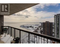 Wake up to breathtaking, unobstructed views of Lake Ontario from this sun-drenched corner residence, ideally positioned in one of Bronte's most sought-after waterfront communities. Perfectly tailored for discerning downsizers, this home offers the rare opportunity to simplify without sacrificing space, comfort, or lifestyle-delivering a true resort-inspired experience steps from the harbour, marina, charming shops, restaurants and picturesque walking trails. A gracious entryway with tray ceiling sets the tone, leading into an elegant interior finished with wainscoting, high ceilings and hardwood flooring throughout. The spacious kitchen is both functional and refined, featuring granite countertops, tile backsplash, valence lighting and stainless steel appliances, flowing seamlessly into the open-concept eating area and main living space. Walls of floor-to-ceiling windows frame breathtaking, unobstructed views of Lake Ontario, filling the home with natural light throughout the day. Step onto the private balcony-large enough for lounging and dining-and take in panoramic lake and marina vistas that feel like a permanent getaway. A second living area, also wrapped in floor-to-ceiling windows, and a formal dining room provide flexibility for entertaining or quiet relaxation. The primary suite is a serene retreat with stunning lake views and a spa-inspired five-piece ensuite featuring dual vanities, a glass walk-in shower and a deep soaker tub. A generous second bedroom, a stylish three-piece bath with walk-in shower, and a dedicated in-suite laundry room complete the layout. Residents enjoy an exceptional array of resort-like amenities including an indoor pool, hot tub, sauna, fitness centre, tennis and squash courts, golf practice area, games and media rooms, library, art and woodworking studios, organized social activities, a lakefront clubhouse, car wash and 24-hour security. An unparalleled opportunity to embrace refined, low-maintenance waterfront living. (id:61594)