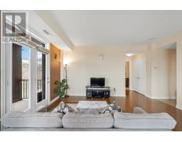Step inside this sought after 1 level, bright and spacious condo which has 2-bedrooms, 2-baths in the heart of Kanata Lakes! The open-concept corner unit design features hardwood flooring in the main living areas, a stylish kitchen with a large island and breakfast seating, granite countertops, stainless steel appliances, and rich espresso cabinetry. Oversized windows fill the dining and living room with natural light and provide access to a private balcony perfect for morning coffee or summer evenings while offering serene views of the Carp River Conservation Area just across the street. The generous primary suite boasts a walk-in closet, large window, and a private 3-piece ensuite with walk-in shower. A well-sized second bedroom, versatile den, and full bath with a soaker tub add flexibility for guests, family, or a home office. Additional conveniences include in-unit laundry, ample storage, and a locker for extra space. This well-maintained building combines modern architecture with a beautifully landscaped setting. Residents enjoy underground parking, a bike rack, covered garbage station, and access to a clubhouse with an entertainment area, library, and party room. Just minutes from shopping, parks, walking paths, and transit this is carefree condo living at its best! (id:61594)