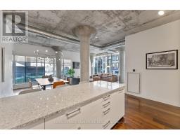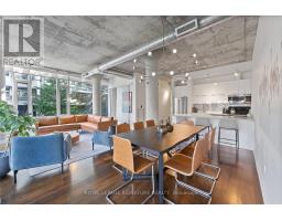$890.81 MonthlyWelcome to Suite 201 at 66 Portland. This bright and spacious, corner suite offers a smart open-concept layout with floor-to-ceiling windows and abundant natural light throughout.The modern kitchen features full-sized stainless steel appliances, sleek cabinetry, and a large island with seating. It opens seamlessly to the expansive living area, where modern flooring and high ceilings create an airy, loft-inspired feel. The dining space comfortably accommodates a full table, making it ideal for both everyday living and entertaining. The primary bedroom includes a large closet and a private ensuite with contemporary finishes. The second bedroom includes a large window and closet, perfect for an office space or nursery. Another full bathroom adds convenience for guests or family. With its rare corner positioning, this suite enjoys light from two exposures and a highly functional floor plan with no wasted space. Located in the heart of King West, 66 Portland is a boutique building surrounded by Torontos best dining, cafes, and nightlife, with easy access to transit and the Financial District. (id:61594)
