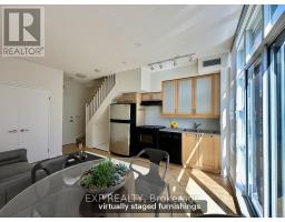 $531 MonthlyYou've heard of the three rules of real estate? Location, location and location! Looking to live in Queen West, one of Toronto's most urbane neighbourhoods? Fronting onto Trinity Bellwoods Park is the boutique Trinity Park Lofts, much loved by its residents for its proximity to downtown, vibrant street life, shops, galleries and restaurants. Architecturally, Trinity Park Lofts takes its cues from the historic, prestigious Georgian estate next door, whose red brick and lush gardens it embraces respectfully. A tranquil, beautifully landscaped courtyard is yours to enjoy and entertain. Stepping into the main floor of this airy, light filled suite, you are greeted by floor to ceiling windows. The main level, with combined Living, Dining and Kitchen on a golden hardwood floor, leads to a curved balcony. Upstairs, is a large bedroom with 3 closets and a spacious 4 piece bathroom, with mirrored walls. (id:61594)