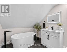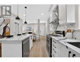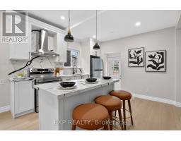 Welcome to 201 Grosvenor Avenue, where modern design meets community charm in one of Hamilton's coolest neighbourhoods-Crown Point. This beautifully updated 2+1 bedroom, 2 bathroom home is the perfect blend of style, comfort, and functionality, ready to create years of great memories.Step inside and you're immediately greeted by soaring ceilings and a bright, cozy living space featuring a statement feature wall and electric fireplace, all anchored by an oversized window that looks out onto your private deck-ideal for both relaxing evenings and lively gatherings.The open-concept designer kitchen flows seamlessly from the living area, making it perfect for entertaining and everyday family life. Finished with stainless steel appliances, modern cabinetry, and plenty of prep space, this kitchen truly sits at the heart of the home. The main level also offers a versatile bedroom-ideal as a home office or guest room-along with oversized laminate flooring and a full bathroom complete with a glass-enclosed standing shower.Upstairs, retreat to your private primary suite, featuring an oversized bedroom, a custom built-in his-and-hers closet, and a spa-inspired ensuite with a four-piece bath, standing shower, tub, and a window overlooking the backyard.Outside, the home continues to impress with an oversized poured concrete patio and a generous backyard designed for entertaining. Enjoy the built-in bar setup, TV inserts, and a shed for extra storage-perfect for hosting friends, family, and game nights.Additional highlights include two parking spaces and a prime location just minutes from Ottawa Street, known for its vibrant shops, cafés, and community atmosphere.This is modern Crown Point living at its best-move in, unpack, and enjoy. (id:61594)