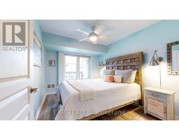 Experience the Georgian Bay lifestyle in the highly sought-after waterfront community of Wyldewood Cove in Collingwood. This bright, extensively upgraded 2-bedroom condo offers 1,081 sq ft of easy, low-maintenance living and one of the largest two-bedroom layouts in the building. With quality finishes throughout, the home features polished concrete countertops, smooth ceilings with pot lights, upgraded flooring, and a striking natural stone fireplace that anchors the living room. Both bathrooms have been beautifully renovated, featuring an oversized walk-in glass shower in one and a bathtub in the other. Step outside to your private patio with water views, complete with custom sunshades and a retractable screen-perfect for morning coffee or evening relaxation. Enjoy low condo fees, a friendly and welcoming community, and excellent amenities, including an outdoor pool, on-site gym, and shoreline storage for kayaks or paddle boards - ideal for sunset paddles. Just minutes from downtown Collingwood and Blue Mountain, this condo is ideal for downsizers, weekenders, or anyone seeking carefree waterfront living. With two exclusive parking spots and a like-new feel throughout, this is a must-see to truly appreciate. (id:61594)
