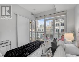 Modern Downtown Living in the Heart of Toronto! Step into stylish city living in this impeccably designed 1-bedroom condo at the sought-after FLY Condos in the heart of downtown Toronto. With a bright and efficient 560 sq ft layout, this east-facing unit features a spacious bedroom with a walk-in closet, an oversized bathroom, in-suite laundry, and a custom built-in media unit for added functionality and flair. Enjoy your morning coffee or evening wind-down from your private open-air balcony. Whether you're a first-time buyer, investor, or professional seeking a vibrant lifestyle, this unit delivers unbeatable value and location.Building Amenities: 24-hour concierge & securityFull gym, yoga & Pilates studioTheatre & games roomsGuest suiteRooftop lounge with cabanas, BBQs & tanning deckLocation Perks:Nestled between Toronto's Financial District and trendy King West, you're just steps from The Well, Rogers Centre, Ripley's Aquarium, the PATH, and Union Station. With dining, shopping, and entertainment at your doorstep, this is true downtown convenience.Extras: Locker included, Low maintenance fees cover heat, A/C, water & building insurance, Pet-friendly (with restrictions) Pictured were taken when the unit was staged. (id:61594)