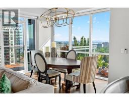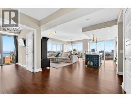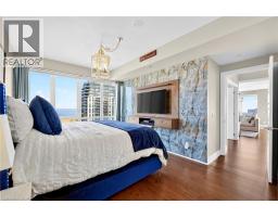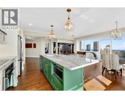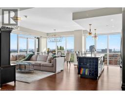 Searching for the perfect lakeview condo in downtown Burlington? Your search is over! Welcome to one of the best residences The Berkeley has to offer! This remarkable 2-bedroom + den, 3-bath suite offers nearly 1,600 sq. ft. of luxury living 15 storeys above the city, with no balcony above you for clear sky views. Enjoy sunrises, sunsets, and boat watching from your massive 270 square foot south-facing wrap around balcony (decking 2021). Inside, floor-to-ceiling windows frame panoramic views of the lake and bay from every room. The spacious primary retreat boasts a walk-in closet and a spa-like ensuite with double sinks, an enormous shower, and a separate tub. The second bedroom is generous in size with its own full bath nearby, while the versatile den is ideal as a 3rd bedroom or private office. Recent upgrades include custom hardwood floors (2024), granite countertops & backsplash (2022), custom office cabinetry (2022), and custom closets (2018). This unit includes 2 parking spots-with room for a motorbike - plus a storage locker. The Berkeley's upscale amenities include a 24-hour concierge, professionally-equipped gym, elegant party room with adjacent billiards room, two guest suites, and a spectacular 3,000 sq. ft. rooftop terrace with lounge spaces, BBQs, and cozy firepits - all with breathtaking views. This exclusive boutique condo is just 3 blocks from the waterfront pier and steps to Burlington's best restaurants, shops, and cafés. Experience luxury, comfort, and convenience in the heart of the city. Don't miss the amazing video tour!! (id:61594)