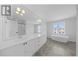 THIS HOME QUALFIES FOR THE HST NEW HOUSING REBATE AND WITH IMMEDIATE OCCUPANCY!! Welcome to this stunning, move-in ready Mattamy-built Woodland Corner II model, (Farmhouse Elevation), in the highly sought-after Richmond Meadows community. Situated on a corner lot and offering 2,708 sq ft total living space, this beautifully designed home features 4 spacious bedrooms, a private den, and a fully finished basement with a recreation room and full bathroom-ideal for growing families and entertaining. The main level impresses with 9' ceilings, rich hardwood flooring throughout the den, great room, and kitchen, and a thoughtfully designed open-concept layout. The chef-inspired kitchen showcases upgraded cabinet hardware, extended upper cabinetry, a large island with waterfall edge, sleek black hood fan, and slimline 4" pot lights, seamlessly flowing into the bright great room complete with an electric fireplace and TV-ready wall with recessed electrical. The primary suite is a true retreat, featuring a spa-like ensuite with double sinks, a bank of drawers, a freestanding tub, and a separate glass shower. The finished basement expands your living space with a large recreation area and full bathroom-perfect for guests, a home gym, or media room. Additional highlights include A/C, keyless entry keypad to the garage, and quality finishes throughout. A perfect blend of style, function, and comfort in a prime family-friendly location. The photos are of a similar model to showcase builders finishes. (id:61594)