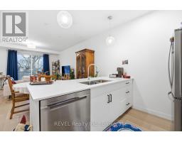 $433.67 MonthlyExperience modern waterfront living in the brand-new South Port Condos, perfectly located along the Welland Shipping Canal with Lake Erie just moments away and within walking distance to restaurants, shopping, and everyday conveniences. This suite features a bright open-concept layout that flows from the kitchen through the dining and living areas and out to the balcony, with a kitchen showcasing quartz counters, under-cabinet lighting, ample cabinetry, generous prep space, and new stainless steel appliances. The condo offers a spacious bedroom, a large bathroom with added storage, and luxury vinyl flooring throughout, along with an in-suite laundry closet equipped with a stackable washer and dryer. Residents can enjoy amenities including a social lounge with outdoor BBQ areas, an exercise room, bicycle storage, EV charging, and secure video-monitored entrances. (id:61594)