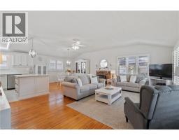 Lovely Lake Views! Spacious and Bright Updated Bungalow with Curb Appeal. Before entering this charming home, take a moment to enjoy the covered porch or deck under the gazebo, offering lovely views of Lake Erie. A reasonable walk to all the amenities Port Dover has to offer: theatre, shops, beach, parks, groceries, dining and professional services. Best of both worlds, this home is in a quiet neighborhood overlooking the marina and lake. Inside Find: Open Concept kitchen/dining/living with high ceilings and panoramic views of the lake through wall to wall windows with California shutters; Hardwood floors; A distinct entryway with a coat closet; Gas fireplace in Living Rm; Kitchen with Skylight, stainless steel appliances, centre island, built-in dishwasher; Large Pantry Adjacent to Kitchen; Large Primary bedroom with walk-in closet; Good Sized 2nd bedroom; Updated spa-like main bathroom w ample cupboard space; Main Floor Laundry, Main Floor 2PC Bathroom; Walk-out to Garage from interior. Garage has a high ceiling that will fit a large vehicle and also has ample storage. 3-4ft high crawlspace under house great for storage. Low maintenance lot features a large side yard with deck, gazebo, and room for BBQ and ample guest seating. Long double-car driveway leads to large shed. (id:61594)