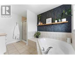 Welcome to this beautifully maintained and spacious townhome in the highly desirable Notting Gate community, where comfort meets style. A generous foyer welcomes you into an open-concept main floor featuring gleaming hardwood floors and abundant natural light. The kitchen/dining area is both practical and inviting featuring solid wood cabinetry, ample counter space, and a custom built-in wall unit for added convenience. Upstairs, you'll find three generously sized bedrooms. The primary suite offers a private retreat with a full ensuite bathroom and a large walk-in closet. The finished basement is bright and functional, complete with a large window, a cozy family room, a spacious laundry area, and additional storage. Step outside to your private, low-maintenance backyard oasis with no rear neighbours. Fully fenced for privacy, it features a gazebo, shed, and a convenient gate with direct access to open space-perfect for relaxing or entertaining. Pride of ownership is evident throughout this home, making it truly move-in ready. Ideally located just minutes from schools, shopping, parks, and bike trails, this is an opportunity you won't want to miss. Book your private showing today and discover all this exceptional townhome has to offer! Furnace and AC 2023, and Roof is 2018. (id:61594)