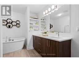 Located in the desirable Bridlewood Trails community, this beautifully upgraded end-unit Oliver model was built by Claridge Homes in 2022 and offers 2,225 sq. ft. of thoughtfully designed living space on a generous 25.92' x 98.43' lot, with Tarion warranty coverage until August 2029. With 4 bedrooms and 2.5 bathrooms, this home delivers comfort, functionality, and modern style in one of Kanata's newest and fastest-growing neighbourhoods. The main level features maple hardwood floors, smooth ceilings, pot lights, and a versatile open-concept layout ideal for both daily living and entertaining. The chef-inspired kitchen is equipped with quartz counters, a breakfast bar, large single undermount sink, upgraded backsplash, high upper cabinets, hood vent, and premium stainless steel appliances, including a KitchenAid dual-fuel gas range with electric oven and a four-door fridge/freezer. Custom zebra blinds add a polished touch throughout. Upstairs, the spacious primary bedroom includes a walk-in closet and a luxurious 5-piece ensuite with double sinks, a soaking tub, glass shower with niche, and ample storage. Three additional bedrooms, upgraded tile in the main bath, and a linen closet complete the upper level. The finished basement offers a cozy gas fireplace, Berber carpet, egress window, and rough-in for a 3-piece bathroom, with framed and insulated exterior walls in the unfinished area for added comfort and storage. Additional highlights include a large single attached garage with inside access to a mudroom/laundry room, HRV and humidifier added to the HVAC system, on-demand hot water heater, and a partially fenced backyard. Ideally located near Eagleson Road and Terry Fox Drive, this home is close to shopping, grocery stores, parks, schools, NCC trails, and farmland, with easy access to Highways 417 and 416, Stittsville, Richmond, central Kanata, the Canadian Tire Centre, and a convenient 20-minute commute to downtown Ottawa. (id:61594)