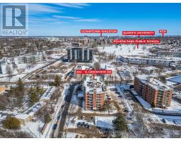 Welcome to your next chapter in one of Kingston's most conveniently located neighborhoods. This bright and inviting two-bedroom, one-bathroom condo offers 1,056 square feet of thoughtfully designed living space that punches well above its weight, freshly renovated in 2025 to shine like new. Step inside to discover brand new luxury vinyl plank flooring flowing throughout, complemented by elegant marble window sills and tasteful tile in the entry and bathroom. The stunning new kitchen features quartz countertops and all appliances are included, making it truly move-in ready. Large open concept dining and living area, flooded with natural light, leads seamlessly to a spacious balcony through a brand new patio door installed in 2024. A generous walk-in closet and in-unit storage along with common storage area keeps life organized. The in-unit storage room also features laundry hookups (not currently used, potential restoration subject to condo board approval). Building amenities rival those of a boutique resort - think outdoor swimming pool, library lounge, exercise equipment area, games room, bike storage, elevator and secure entry with dedicated parking plus guest parking. Location truly steals the show here. Steps from public transit, Frontenac Mall, parks, and the prestigious Cataraqui Golf and Country Club, you're also just minutes from beautiful Lake Ontario Park, downtown Kingston, Queen's University, and local hospitals. Don't let this one slip away - book your private tour today and see why this condo listing won't last long. (id:61594)