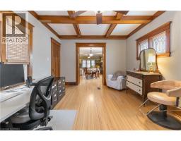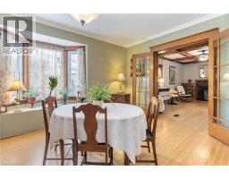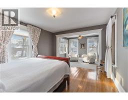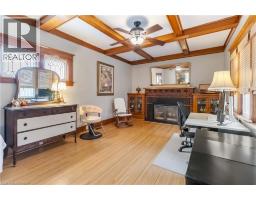 Classic charm meets modern comfort in this beautifully maintained brick 2-storey home, ideally located on Brant Avenue close to parks, schools, shopping, and transit. Offering over 2,000 sq ft of living space, this home is far more spacious than it appears and showcases timeless character throughout, including refinished red oak hardwood floors, rich original chestnut trim, oversized baseboards, crown moulding, bay windows, and elegant French doors. The formal living room and main-floor family room each feature gas fireplaces, creating warm and inviting spaces ideal for both entertaining and everyday living. The updated eat-in kitchen blends classic style with modern function and features cherry cabinetry, granite countertops, ceramic tile flooring, stainless/professional-series appliances, and a steel entry door. Upstairs, the oversized primary bedroom is a true retreat with a sitting area or sunroom, walk-in closet, and private balcony, complemented by two additional bedrooms and a 4-pc bathroom. The lower level awaits your personal touches offering an unfinished area with a separate basement entrance, providing excellent potential for a home-based business, in-law setup, or additional living space. Outside, enjoy a large covered front verandah, a private fully fenced backyard with flagstone patio, an attached carport, and a detached garage or workshop with electrical. Significant updates include a metal roof, new windows on the main and upper levels (2022), new security lighting (2022), and new eavestroughs (2024), along with attic insulation. This is a rare opportunity to own a character-filled home with meaningful upgrades in a prime location—this one truly must be seen to be appreciated. (id:61594)