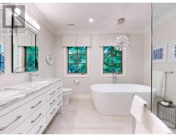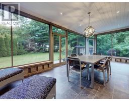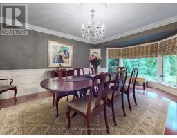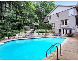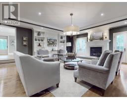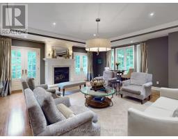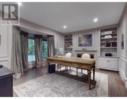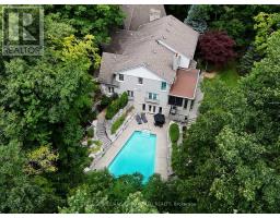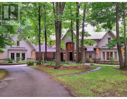 Custom built estate home nestled amongst 4.43 acres of towering trees in prestigious Exclusive Estate Community. This remarkable home features great upgrades incl: pot lights, crown moulding, wainscoting, multiple walk-outs, large windows w/panoramic views & numerous fireplaces. Stunning kitchen, family rm & primary bedroom was designed by Jane Lockhart. The renovated kitchen is a modern masterpiece w/valence lighting, walk-in pantry, coffee station & high-end built-in appliances featuring a cabinet facade. Ideal for entertaining, the kitchen also has a large island, cozy fireplace and a breakfast area with access to a Muskoka room. The sun-drenched Muskoka room has gorgeous views of the serene rear grounds & boasts access to a deck overlooking the pool area. Spacious mudroom with access to the garage and private access to the In-Law suite that has a spacious living room, private bedroom & ensuite bathroom. The formal dining room with corner display units that feature glass shelving and accent lighting. Immaculate sunken living rm is complete with coffered ceilings, built-in wall unit with ample storage, shelving and countertops for display. Spacious family rm boasts cork flooring & W/O to private deck. The finished, walk-out lower level is an entertainer's dream with a spacious, open concept recreation room, games room featuring a built-in seating booth, private gym with mirrored walls, a cantina and a wet-sauna. The fully landscaped rear grounds boasts multiple entertainment areas with an inground pool overlooking a private lush forest as a backdrop. Large armour stones provide ambiance of being at a Muskoka retreat as well provide beautiful garden beds for seasonal & perennial plants. The upper entertaining patio enjoys private views of the property & multiple access points to the indoor for effortless entertaining. The front grounds is a natural beauty with towering trees, circular driveway, lush gardens & a grand exterior vestibule for an added taste of luxury. (id:61594)