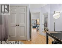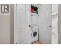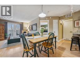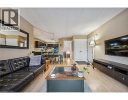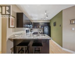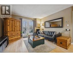 $607.97 MonthlyGreat value! Discover this 2 bedroom 1 bath condo with rare private forest-facing balcony in Burlington’s sought-after Forest Chase community in the heart of Headon Forest. The bright, open-concept living space includes a dining area, and features light laminate flooring, upgraded trim and casings and is painted in neutral colours. The modern and upgraded kitchen features dark hardwood-style cabinets, soft-close cabs and drawers, a built-in range hood, and an overhanging counter for a convenient breakfast bar. The spacious primary bedroom has a double closet and a large picture window overlooking the treetops. The 2nd bedroom also includes a large window and closet. The custom-refinished 4 pc bathroom features quartz counters, ceramic floors, a clean vinyl surround tub & shower insert, lots of cabinet space and modern floor and under-cabinet lighting acting as perfect night-lights. The bright living area walks out to a private balcony that faces west and gets the afternoon sun, beautiful views of a quiet forested ravine, and gorgeous sunsets in the winter months. And there is ample space for chairs and a BBQ. Other features include a new bedroom window, new French balcony door and front door, newer balcony railing, a hideaway stacked washer/dryer closet and stylish overhead lights. A large locker is included and the underground parking space is privately owned. Great location in central Burlington, close to shopping, parks and highway access! (id:61594)