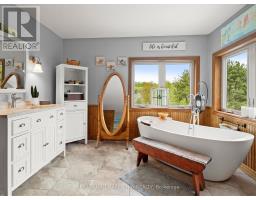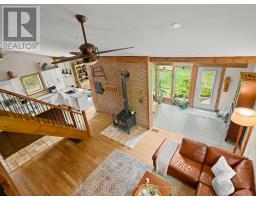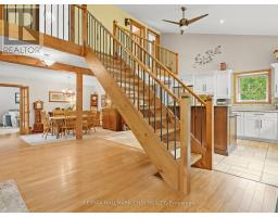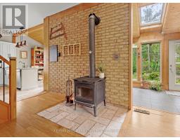 This is not your everyday home its something truly special. Thoughtfully designed and full of character, this distinctive property stands out in all the right ways. Privately set back from the road, it welcomes you with warmth, charm, and a feeling of home the moment you arrive. Offering spacious, flexible living, you'll love the beautifully updated kitchen the heart of the home complete with in-floor heating for ultimate comfort. Perfect for entertaining, the kitchen flows seamlessly into a cozy family room where you can enjoy quiet nights by the wood stove. A second living area on the main floor adds versatility, ideal for kids and guests. The main floor also features a generously sized primary bedroom retreat, complete with ensuite bathroom and serene backyard views. And for added comfort, the main floor bathroom is also outfitted with heated floors. Upstairs, the addition built in 2018 offers even more living space, including an additional bedroom and bathroom. Step outside to your private backyard oasis, where a deck overlooks a beautifully treed lot. Venture further and discover a network of scenic trails that wind through the property perfect for hiking now, and ready for snowshoeing and cross-country skiing come winter. These trails also connect with those shared throughout the community, offering a rare blend of privacy and connection with nature. And don't miss the charming Sugar Shack nestled among the trees a unique feature that adds rustic charm and endless potential. Additional features include: A Heated and Insulated Garage, Ideal for Year-Round Use or Workshop Space, Updated Kitchen, Living Room & Front Entrance Renovated (2016), Bamboo Hardwood Flooring Installed Throughout, Upstairs Bathroom Renovated (2024), Front Outdoor Landscaping & Steps (2023), Second-Story Addition Over Garage (2018). All this, just 10 minutes from Highway 9 with quick access to the GTA combining the best of peaceful rural living with urban convenience! (id:61594)