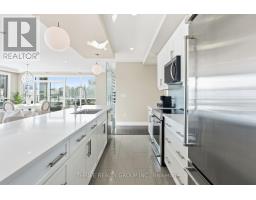 An exceptional executive residence offering the scale, privacy, and outdoor living of a penthouse-without high floors or long elevator wait times. This beautifully upgraded suite features 1,615 sq. ft. of refined interior space paired with a rare 2,342 sq. ft. exclusive-use terrace, creating an outstanding indoor-outdoor lifestyle.The open-concept Great Room is ideal for everyday living and elegant entertaining, seamlessly integrating generous living and dining areas with a striking chef's kitchen, all surrounded by expansive windows and natural light. Premium finishes include hardwood and porcelain tile flooring, extensive pot lighting, upgraded fixtures, and heated bathroom floors.The gourmet kitchen offers ceiling-height white cabinetry, quartz countertops, stainless steel appliances including a built in counter-depth refrigerator, designer tile backsplash, an oversized 12-foot island with seating for four, and a walk-in pantry. The living area features custom built-ins and an extended linear fireplace, with the dining space accented by a glass-enclosed wine display. The primary bedroom retreat accommodates a king-size bed and includes a walk-in closet and a spa-inspired five-piece ensuite with granite countertops, double vanity, glass and tile shower, soaker tub, and heated floors. The second bedroom is ideal as a guest suite or home office. A three-season Lumon sunroom with floor-to-ceiling retractable glass and UV protection extends year-round enjoyment. Outdoor living is exceptional, with a south-facing terrace featuring astroturf and cedar hedge border, plus an expansive open patio with eastern exposure-perfect for entertaining and sunrise views.Includes four underground parking spaces and an owned storage locker. Building amenities include an indoor pool, fitness centre, dining room, billiards room, library/lounge, and theatre. Desirable North London location near shopping, golf, hospitals, and nature trails. Condo fees include heat and air conditioning. (id:61594)