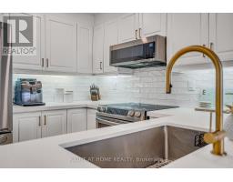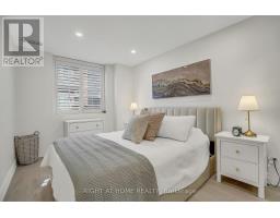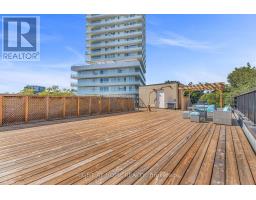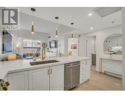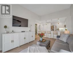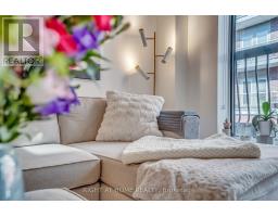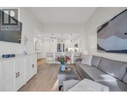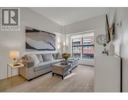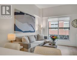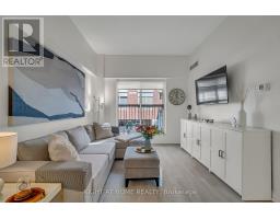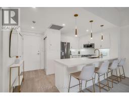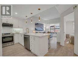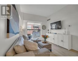 Welcome to Suite 205 at the Humber Lofts - an intimate boutique residence of only 33 units, ideally situated in the heart of Central Etobicoke. Enjoy the convenience of being only steps to Dundas St W, Bloor St W, shopping, cafes, transit, Royal York Subway Station, Lambton Park, and scenic walking and cycling trails along the Humber River. Beautifully renovated with contemporary finishes, this suite offers a bright and functional open-concept layout enhanced by new laminate flooring, high-profile baseboards and fresh, neutral tones throughout. The thoughtfully updated kitchen serves as the centerpiece of the home, featuring modern stainless steel appliances, abundant hardwood cabinetry accented with brushed gold hardware, chic beveled subway tile, upgraded pendant and recessed lighting, and quartz countertops with an extended peninsula for additional seating. The spacious living and dining area boasts soaring 10 ft ceilings and a Juliette balcony that invites an abundance of natural light. The stylish 4-piece bathroom has been fully redesigned with large-format porcelain tile, a modern vanity, and a glass-enclosed shower accented with gold fixtures. The serene primary bedroom offers a mirrored double closet, recessed lighting, and a large window complete with California shutters. Residents also enjoy access to the recently updated rooftop terrace, offering a peaceful outdoor retreat with lounge seating, gazebo, and barbeque area - perfect for relaxing or entertaining. Elegantly upgraded and lovingly maintained by its current owner, Suite 205 presents a rare opportunity to own a refined, move-in-ready home in a highly desirable community. (id:61594)