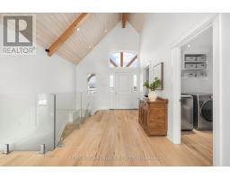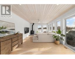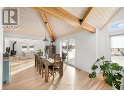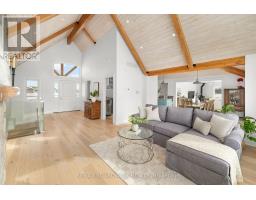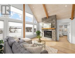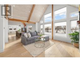 Sitting on just under two acres of beautifully landscaped grounds, this extraordinary custom-built reverse walkout bungalow offers a rare blend of architectural elegance, refined craftsmanship, and serene natural beauty. Built by Linwood, this residence is a masterclass in luxury living, where every element has been thoughtfully curated for both style and function. The stunning entrance way greets you with dramatic 16-foot vaulted pine ceilings, exposed Douglas fir beams, and rich hickory hardwood flooring-creating a striking yet inviting ambiance. The expansive, light-filled great room seamlessly connects to a designer chef's kitchen, appointed with premium appliances, quartz surfaces, and an oversized island that serves as both a culinary workspace and a sophisticated gathering point. Designed for elevated everyday living and effortless entertaining, the home offers a seamless indoor-outdoor connection through expansive windows and three patio doors which all lead to a deck that spans the rear of the home. The fully finished walkout lower level continues the home's refined aesthetic, featuring 9-foot ceilings, two generously sized bedrooms, and a spa-calibre bathroom designed for ultimate relaxation. A versatile living area provides endless possibilities-whether as a private fitness studio, media lounge, or games retreat. Outdoors, the property transforms into a tranquil estate setting, complete with curated landscaping, newly planted trees, and elegant Brownstone rock walls. Ideally located just minutes from Stittsville and Carleton Place, with quick access to major routes, this exceptional property delivers the perfect balance of exclusivity and convenience. A distinguished offering for the buyer who appreciates luxury, craftsmanship, and setting come together in perfect harmony. (id:61594)