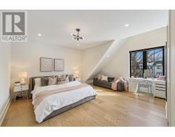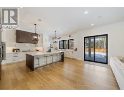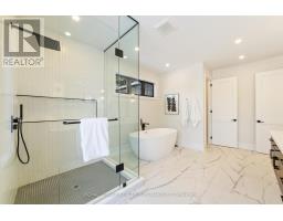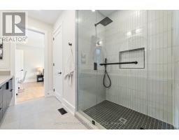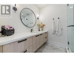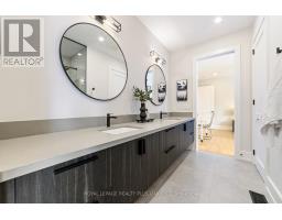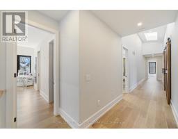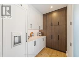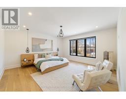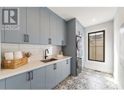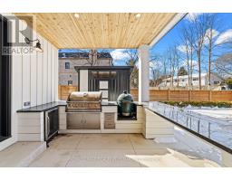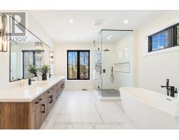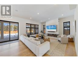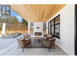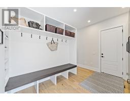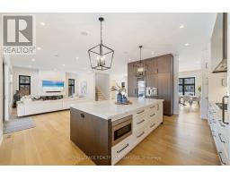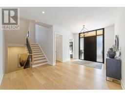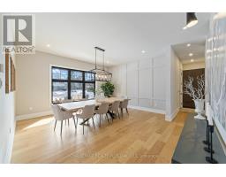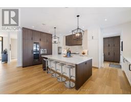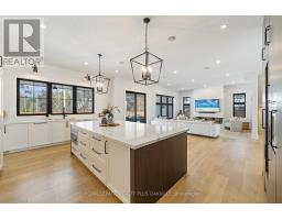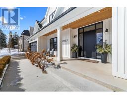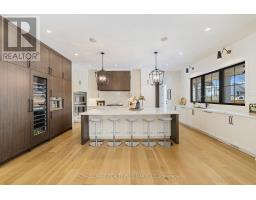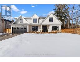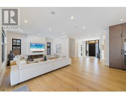 Stunning custom Modern Farmhouse (2022/2023) set on an expansive 85 x 133 ft lot on a quiet, family-friendly street just steps to the lake, Bronte Harbour, and Coronation Park. This exceptional residence blends sophisticated design with premium finishes and state-of-the-art functionality throughout. The open-concept main floor showcases soaring 10 ft ceilings, integrated ceiling speakers, designer farmhouse lighting, and automatic shutters. Sun-filled dining room with accent wall flows seamlessly into a showpiece chef's kitchen featuring Thermador appliances, dual wall ovens, 36" cooktop, integrated fridge, built-in coffee maker, dishwasher, and a Gaganeau wine fridge with 150-bottle capacity. The oversized island with custom storage and microwave drawer is complemented by a fully outfitted walk-in pantry with bespoke cabinetry and full-size stand-alone freezer. The family room is anchored by a dramatic three-sided 60" Napoleon glass fireplace with custom millwork. A private office, two elegant powder rooms, & a custom mudroom with backyard access complete the level. Upstairs offers 9 ft ceilings, skylit hallways, and four spacious bedrooms with walk-in closets and automatic shutters. The luxurious primary suite features custom barn doors, an expansive 12' x 11' dressing room, and a spa-inspired 5-pc ensuite. Two additional bathrooms, including a Jack & Jill, and a well-appointed laundry room provide exceptional convenience. The finished lower level adds approx. 1,500 sq ft of finished space with a gym, 5th bedroom, full bath, and recreation space with built-ins. Advanced HVAC, smart home integration, and ample storage complete the space. The private backyard oasis features a full-width covered living area with gas fireplace and outdoor kitchen with gas BBQ, heated saltwater pool with built-in bench, hot tub, cabana, professional landscaping, lighting, and irrigation. A heated, professionally finished double garage with Tesla charger completes this remarkable home (id:61594)