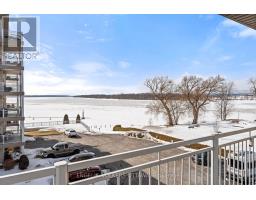 This bright and spacious corner unit with 1,165 sq ft of living space and a wrap-around balcony is positioned along the scenic banks of the Ottawa River. The apartment's position on the 2nd level of the building gives it direct waterfront views, incredible daylight, & beautiful sunsets over the water. Its living room is anchored by a gas fireplace, has access through two sliding glass doors to the river-facing balcony, & features hardwood flooring, which runs through the living areas, creating a warm, cohesive atmosphere. The well-appointed kitchen features white cabinetry, quartz countertops, stainless steel appliances, ample counter space & storage, & direct access to a corner pantry. A laundry room/powder room is found by the front entrance to the unit. The primary bedroom features a large walk-in closet, while the second bedroom includes a custom-built-in wall unit with a Murphy bed, shelving, & a dedicated desk area, making it ideal as both a guest room & a home office. The spacious main bathroom offers a luxurious soaking tub, a separate glass-enclosed shower, & additional cabinetry for storage. This unit includes an underground parking space & a larger-than-average storage locker. The complex has a car wash in the garage, a workshop, a party room, an exercise room, & a scenic outdoor BBQ area with a dedicated kitchen & fridge, located just steps from the river. From the grounds, you can access the marina, Du Moulin Park, walking paths, & plenty of green space, making it ideal for those seeking a calm, quiet home. The town of Rockland has a small-town atmosphere while still being close to everyday amenities, including cafés, restaurants, grocery stores, shops, & essential services along Laurier Street, as well as the nearby recreation complex, which has a library, YMCA, indoor pool, fitness facilities, & offers community programming. Quick access to Highway 17 makes commuting into Ottawa simple and efficient, all while living in a picturesque setting. (id:61594)