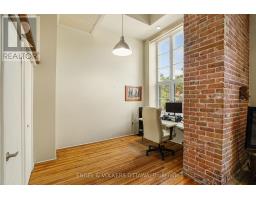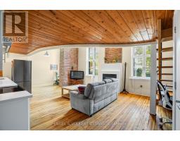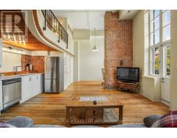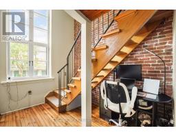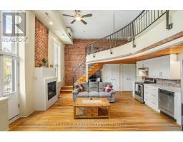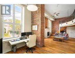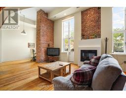 $658.67 MonthlyStep into a true piece of Ottawa history with this bright and character-filled 1-bedroom, 2-bathroom loft at the iconic Wallis House. Featuring soaring ceilings, exposed brick, and rich wood finishes throughout, this unique two-level unit blends heritage charm with modern comfort. The main floor offers a spacious open-concept layout with a gas fireplace, full-height windows, and direct access to your private balcony. The kitchen is equipped with stainless steel appliances, white cabinetry, and warm wood accents located under the mezzanine. A convenient powder room and tucked-away office or den space complete the main level. Upstairs, the lofted bedroom overlooks the main living area and features a 4-piece ensuite bath and closet space. With a flexible layout and authentic loft vibes, this home is ideal for professionals, creatives, or anyone looking for something a little out of the ordinary. Located in a historic building with easy access to downtown, the ByWard Market, and the Rideau River paths, this loft offers a flexible layout and undeniable charm all in one of Ottawa's most iconic and storied addresses. Recent improvements: Owned HWT (2019), Balcony (2024), New Windows (2019), Kitchen Cupboards & Countertops (2024). (id:61594)