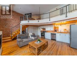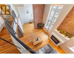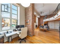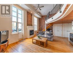 Own a distinctive piece of Ottawa's architectural history at the iconic Wallis House. This bright and beautifully maintained 1-bedroom + loft, 2-bathroom residence delivers authentic character paired with modern-day upgrades in a truly unique two-level layout.Soaring ceilings and dramatic exposed brick create immediate impact, while oversized windows flood the main level with natural light. The open-concept living and dining space is anchored by a cozy gas fireplace and offers direct access to a private balcony - the perfect spot for morning coffee or evening wind-downs.The kitchen is smartly positioned beneath the mezzanine and features stainless steel appliances, crisp white cabinetry, and warm wood accents that complement the building's historic charm. A discreet office/den nook and a convenient powder room complete the main floor, adding both flexibility and function.Upstairs, the lofted primary retreat overlooks the living area below and includes generous closet space along with a full 4-piece ensuite. The airy design and multi-level layout make this home ideal for professionals, creatives, or buyers seeking something far more inspiring than a typical condo.Set in one of Ottawa's most storied addresses, you're just minutes from downtown, the ByWard Market, Rideau River pathways, restaurants, cafés, and everyday amenities - offering the perfect balance of urban convenience and timeless character.Recent updates include: Owned hot water tank (2019), new windows (2019), updated kitchen cupboards and countertops (2024), and balcony improvements (2024).A rare opportunity to live in a landmark building with personality, history, and style. (id:61594)