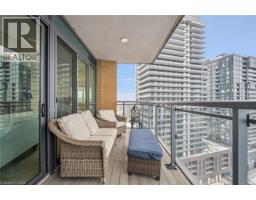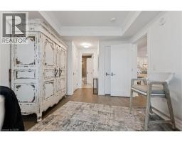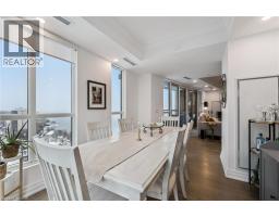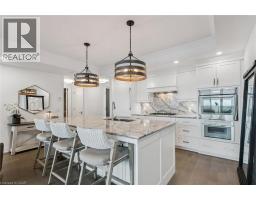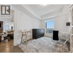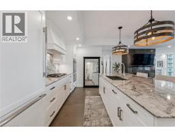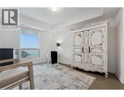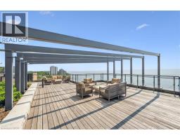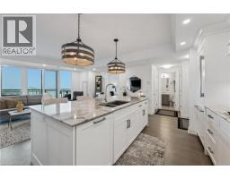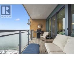 Experience refined lakeside living at Bridgewater Private Residences. This 1,275 sq. ft. corner suite offers a great layout with sweeping views of Lake Ontario and the Burlington–Toronto skyline. The floor plan includes two spacious bedrooms, each with its own ensuite bathroom and heated floors, as well as a separate dining room that can also serve as an office/den or additional bedroom, study, or fitness space. The upgraded kitchen includes Thermador appliances, a five-burner gas cooktop, upgraded large island with additional lower cabinet storage, and a layout designed to capture the lake views. The living and dining areas offer generous space for multiple furniture configurations, with an upgraded large 36” gas fireplace, perfect for warm winter evenings and direct access to the balcony equipped with a gas line for a barbecue and upgraded maintenance free, custom balcony decking from Condo Kandy. Additional features include automatic Hunter Douglas blinds, in-suite laundry, large closets, and floor-to-ceiling windows. Residents enjoy a collection of on-site amenities, including an indoor pool, two fitness rooms, a rooftop courtyard, games room, party room, 24-hour concierge, bike storage, and valet visitor parking. The suite also includes two parking spaces, with the option for EV charging installation. Bridgewater Private Residences offers a sought-after waterfront lifestyle in downtown Burlington with convenient access to shops, restaurants, parks, and the lakefront. (id:61594)