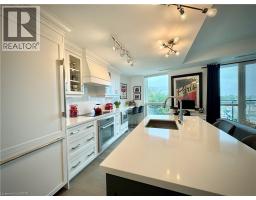 $907.76 MonthlyAFFORDABLE LUXURY ON THE WATERFRONT! Beautiful one bedroom condo, with high end finishes, located in the prestigious Bridgewater Residences on the Lake. Bridgewater is waterfront living at its finest. Exceptional amenities include a huge 8th floor outdoor terrance with BBQs and spectacular views of Lake Ontario. Other amenities include 2 fitness centres, party room with billiards and piano, spa like indoor pool, boutique style lobby with 24 hour concierge , direct access to Isabells restaurant, Pearl Cafe and the Pearle Hotel. Enjoy monthly social events and get togethers. Located directly on the gorgeous Waterfront Trail on Lake Ontario, along the Brant Street Pier and Spencer Smith Park. The condo features beautiful sunrises from the East facing balcony. Open concept living room /dining room/ kitchen. The kitchen features beautiful white cabinetry, huge island and Thermador appliances. The kitchen/ dining room/ living room area is pretty spacious, with room for more furniture and flexible configuration. Kitchen has room for a dining table plus there is an extra long counter top area, thats perfect for an office area. Heated floors in the 4 piece bathroom; bedroom features a large double closet. Beautiful trim work throughout. Located in the heart of Burlington, walkable to vibrant shops and a variety of many restaurants. Included are one underground parking spot and one storage locker (both are owned). Heat is included in the condo fees. Book your showing today. (id:61594)