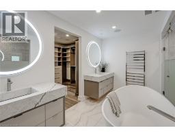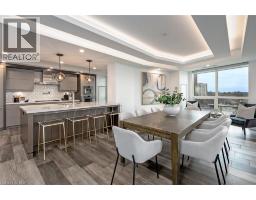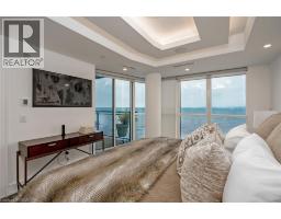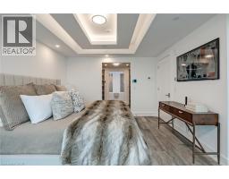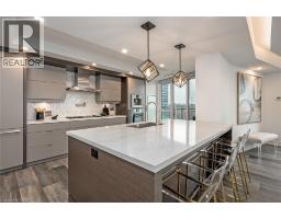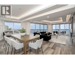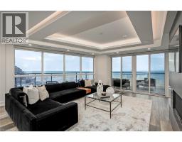 Experience luxury waterfront living in this spectacular 2,200 square foot residence in the prestigious Pearle Hotel & Spa. Designed with full home automation, built-in speakers, and heated floors throughout, this suite offers refined finishes and exceptional comfort. The chef-inspired kitchen features premium Gaggenau appliances including a built-in coffee maker and gas cooktop, stone countertops, pot filler, and a large island, flowing seamlessly into the open concept living and dining area with gas fireplace and expansive lake views. Walkouts lead to a private wrap-around balcony and a separate BBQ balcony with gas hookup. The luxurious primary suite boasts a custom walk-through closet and a spa-inspired five piece ensuite with steam shower, jetted soaker tub, heated floors, and towel warmer. A sophisticated library with fireplace, wine display, and wet bar offers flexible living space, while the second bedroom includes its own ensuite. Residents enjoy world-class amenities including 24-hour concierge, indoor pool, fitness facilities, rooftop terraces, and direct access to the Pearle Hotel’s restaurant, café, and spa. Located in the heart of downtown Burlington, steps to Spencer Smith Park, the waterfront, shops, dining, and cultural attractions. Includes two parking spaces and locker. This is luxury living at its finest. (id:61594)