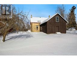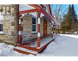 The appeal of this century stone home begins with its attractive quoin corners and gingerbread trim on the endearing verandah. Welcoming front entrance has lovely stone arch above the solid wood door with charming side panels and transom. Inside, the design is of warm tradition with 9 ft high ceilings, deep window sills and wide baseboards. The 4 bedroom 2 full bathroom home is also freshly painted throughout, with a pleasing calm colour palette. In the living room, light flows through three big windows and reflects off the laminate plank flooring. The formal dining room has two tall windows that are so beautifully trimmed, it could only have done by yesteryear handcraft. Classic French door opens to country kitchen with eating area and counter-to-ceiling pine cabinetry that provides endless storage. The main floor 3-pc bathroom has wall of storage cabinets. Mudroom has another wall of closets and laundry station. On the second floor, you have sitting nook, three-piece bathroom and four good-sized bedrooms with lots of extra-large closets. Attached to the back of home, accessed via the mudroom, is huge former summer kitchen with expansive loft - providing great flex space for possible family room, workshop or studio. The basement has thick stone walls and utility area. And, you will be pleased with all the home's upgrades including 2018-2021 windows, new 2024 propane furnace with smartphone compatible thermostat, 2022 hot water tank and 2022 septic system. Outside is large half acre with mature trees and space for gardens. Plus, barn-styled shed with loft and metal roof, ideal for storage and projects. High speed and cell service available. Located on paved township road with mail delivery and school bus route. Just 10 mins to Perth. (id:61594)