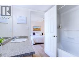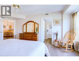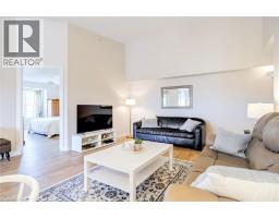 Welcome to penthouse living in this bright, southeast corner unit condo. Offering nearly 1,100 sqft of stylish, sunlit space in a quiet pocket of the complex. This carpet-free 2-bedroom, 2-bath suite features soaring vaulted ceilings, and windows all around with it being a corner unit that fill the home with natural light. Recently updated with sleek new flooring, the open-concept layout includes a full dining area, spacious living room, and a contemporary kitchen with ample counter space, breakfast bar, and direct access to a private balcony—perfect for morning coffee or evening sunsets. The generous primary suite offers a peaceful retreat with a large bedroom, 4-piece ensuite, and closet, while the second bedroom is well-sized with 2nd full bathroom nearby—ideal for guests or a home office setup. Additional highlights include in-suite laundry, underground parking, a storage locker, and updated plumbing (Kitec fully removed). Residents also enjoy access to on-site amenities like a fitness centre, sauna, and stylish party room. All this, just steps from groceries, cafés, restaurants, parks, trails, and transit. With easy access to Appleby GO, the QEW, and Hwy 407, this turnkey penthouse is a rare find in one of Burlington’s most walkable neighbourhoods. (id:61594)