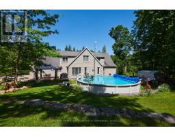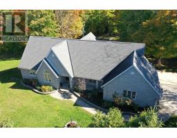 This Custom-built stone home sits on 7 private, forested acres with manicured gardens and an in-law suite in the basement - only minutes to town and is close to area schools. With approximately 4,700 sq ft, the home has been beautifully maintained with exceptional attention to detail. The main floor offers a large kitchen with eating area, formal dining room, living room, sunroom, office, second bedroom and a spacious primary suite with 5-pc ensuite and walk-in closet. There is also an attached 2-car garage. On the second floor are three bedrooms (one with 4-pc ensuite) plus a shared 4-pc bath. The expansive basement functions as a self-contained in-law suite with two bedrooms, a large rec room and private garage access. This home has had the following updates: complete septic replaced 2020 (pumped Summer 2023), roof replaced 2015, geothermal system (13 yrs), Generac whole-home generator added 2022, new HWT 2022, many plumbing fixtures replaced, updated kitchen/main-floor flooring, entire 2nd floor repainted, main floor foyer, dining room, hallways also repainted, and the majority of lighting switched to efficient LED, driveway re-graveled/relevelled. Above-ground pool and professionally installed Starlink provides unlimited high-speed internet. Total heat + hydro average $550/month; (6 People Residing in Home) propane used only for fireplaces and Generac. 24-hr irrevocable on all offers. Please do NOT drive up the driveway without an appointment. (id:61594)