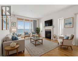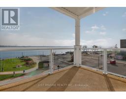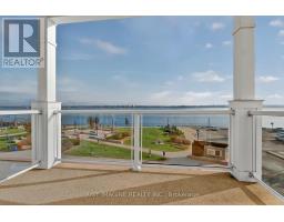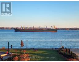 Welcome to the Mariners Club of Prescott! Enjoy breathtaking views of the St. Lawrence River and the ease of walking to nearby shops, restaurants and local amenities, all within the vibrant RiverWalk District. This beautifully designed building features just 28 exclusive units, each offering both a covered front terrace and a private, south-facing covered balcony. This rarely available CORNER-END UNIT spans 1,348 sq.ft. and showcases 9 ft. ceilings, gleaming hardwood floors, and an abundance of natural light from north, west, and south-facing windows, capturing stunning river views throughout the day. The modern kitchen is a standout, complete with a large island, elegant white cabinetry, tile backsplash, and stylish brushed nickel finishes. The open-concept living area is enhanced by a cozy fireplace and direct access to the spacious balcony, which is also accessible from the primary bedroom. The generous primary suite features a walk-through closet and an ensuite with a walk-in shower. A versatile guest bedroom, separated by double French doors, is ideally located next to a full bath, perfect for visitors or a home office. Step outside and immerse yourself in the lifestyle this location offers; stroll along the scenic riverside paths of RiverWalk Park, relax at the neighboring Marina, or take in a round of golf at the Prescott Golf Club. You will enjoy the live performances at the Kinsmen Amphitheatre and Shakespeare's Gardens, home to the popular summer concert series and St. Lawrence Shakespeare Festival. Additional features include a secure, fully accessible building with heated underground parking, elevator access, automatic doors, in-suite laundry, a private storage locker, and pet-friendly policy. Just one hour from Ottawa, Cornwall, and Kingston, this exceptional condo offers not only spectacular views, but a truly vibrant and welcoming community you'll be proud to call home. See Multimedia Link for Virtual Tour! (id:61594)